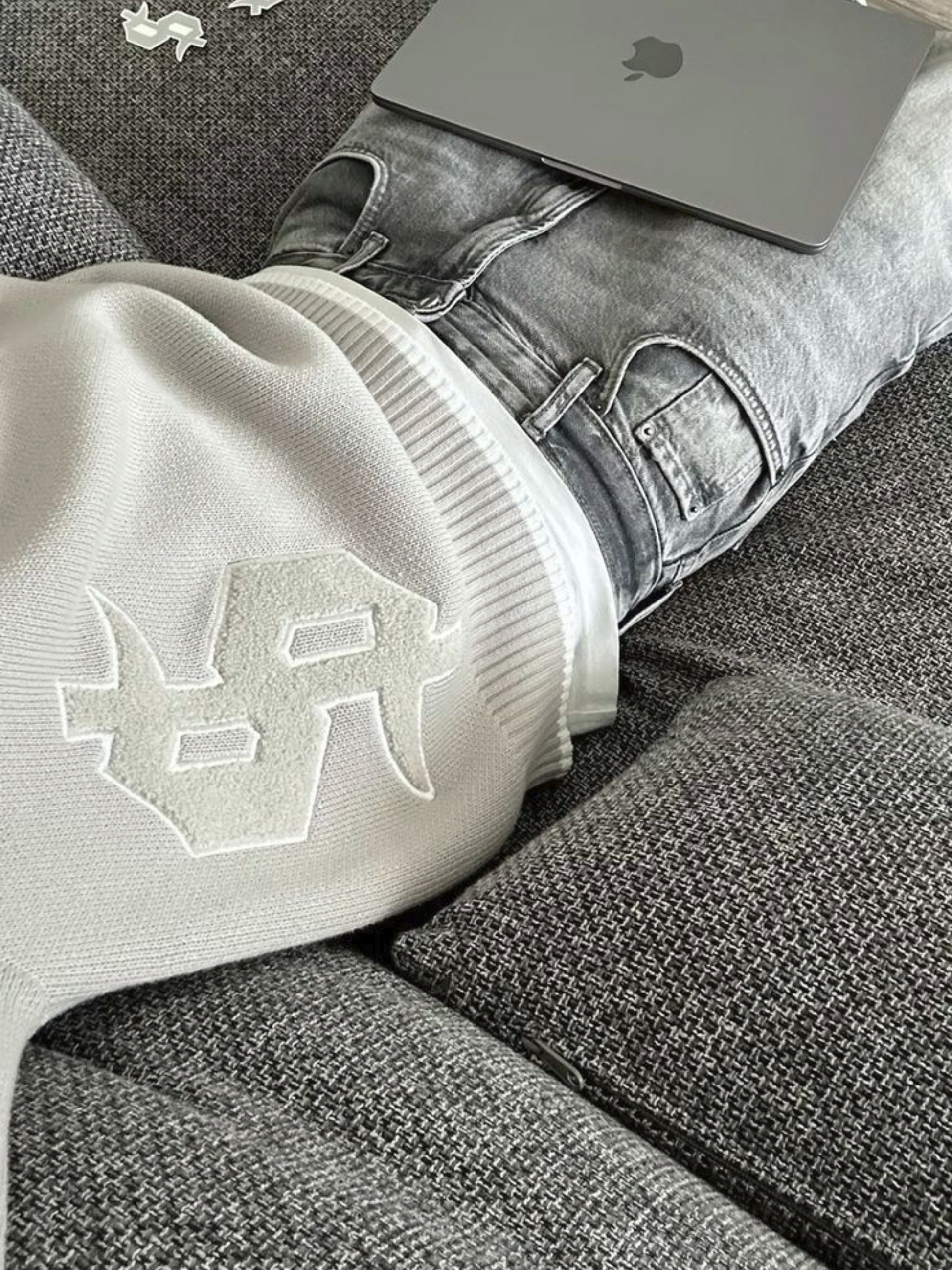 Our first knitted piece, FORTUNE features hand stitched accents finished with ribbed hems and cuffs.
