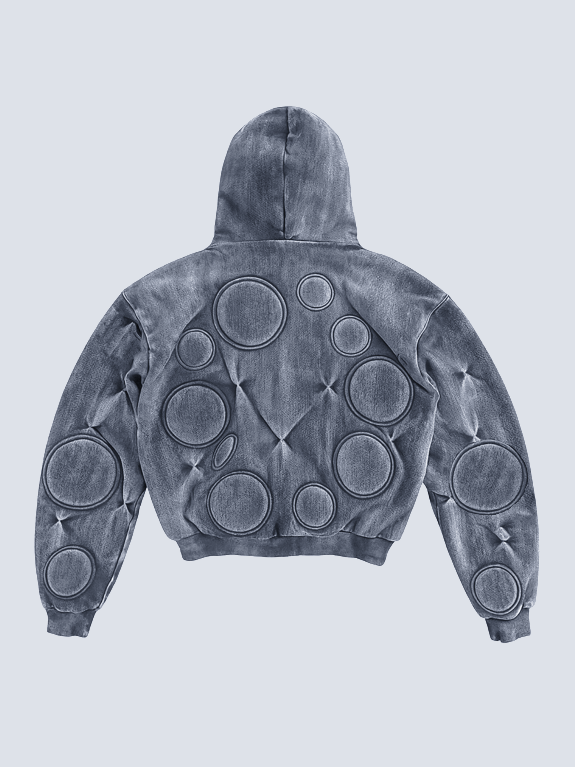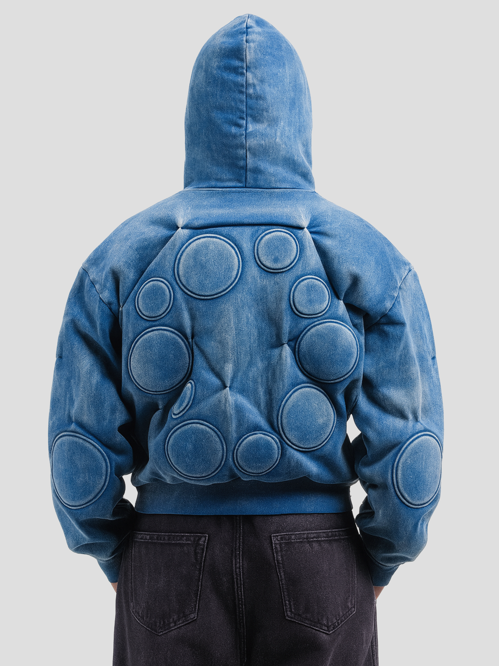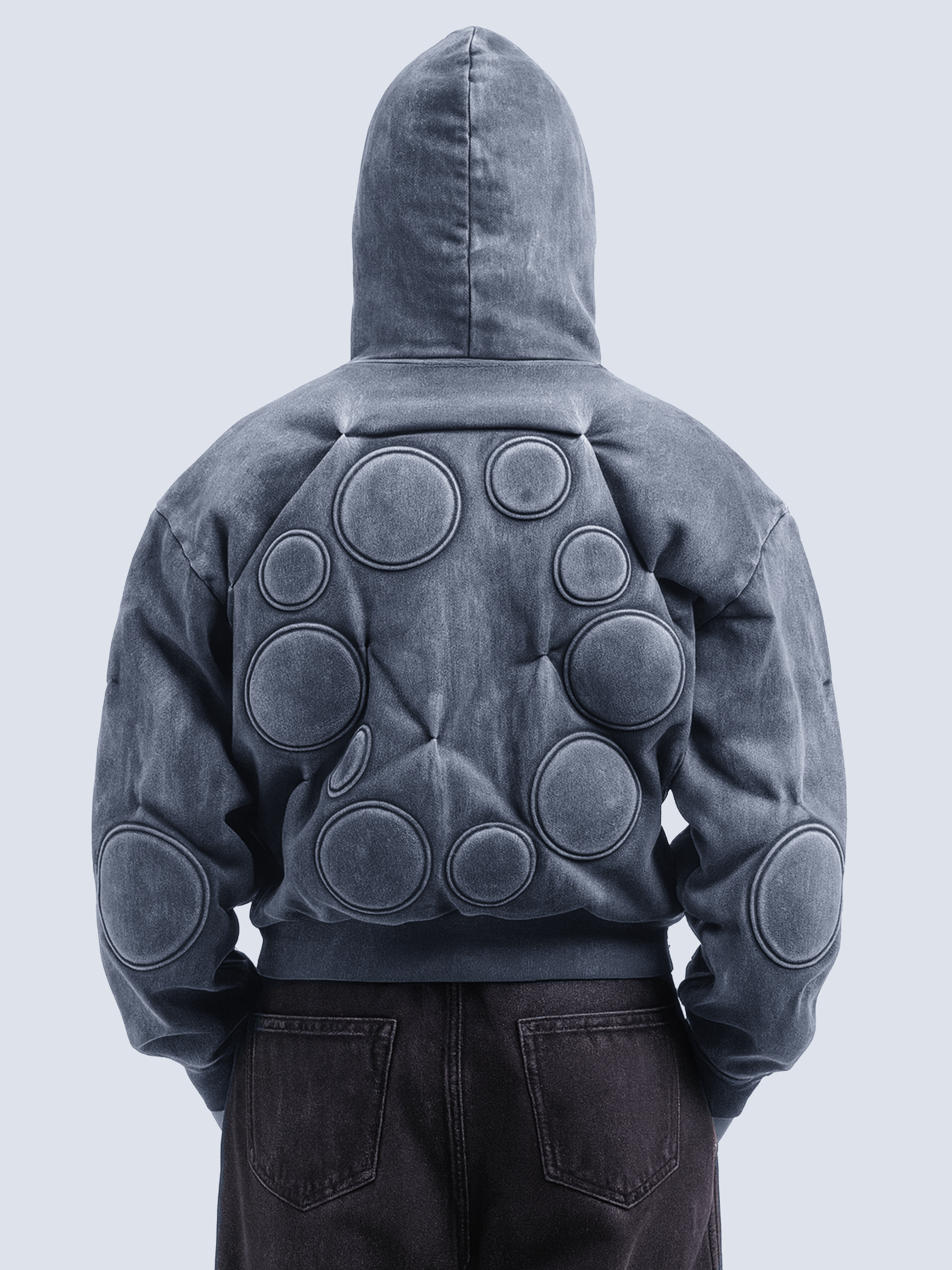 ORBIT features a sculpted, padded exterior with raised circular paneling.